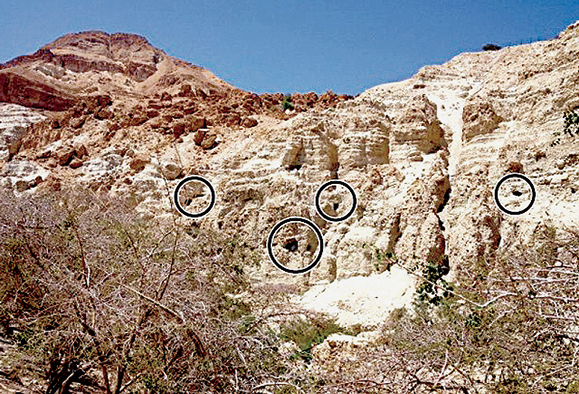 <사진설명>엔게디 동굴. 엔게디에는 물과 동굴이 많아 은신처로 좋다. 다윗도 사울 왕을 피해 이 동굴 어딘가에 숨어 있었다.