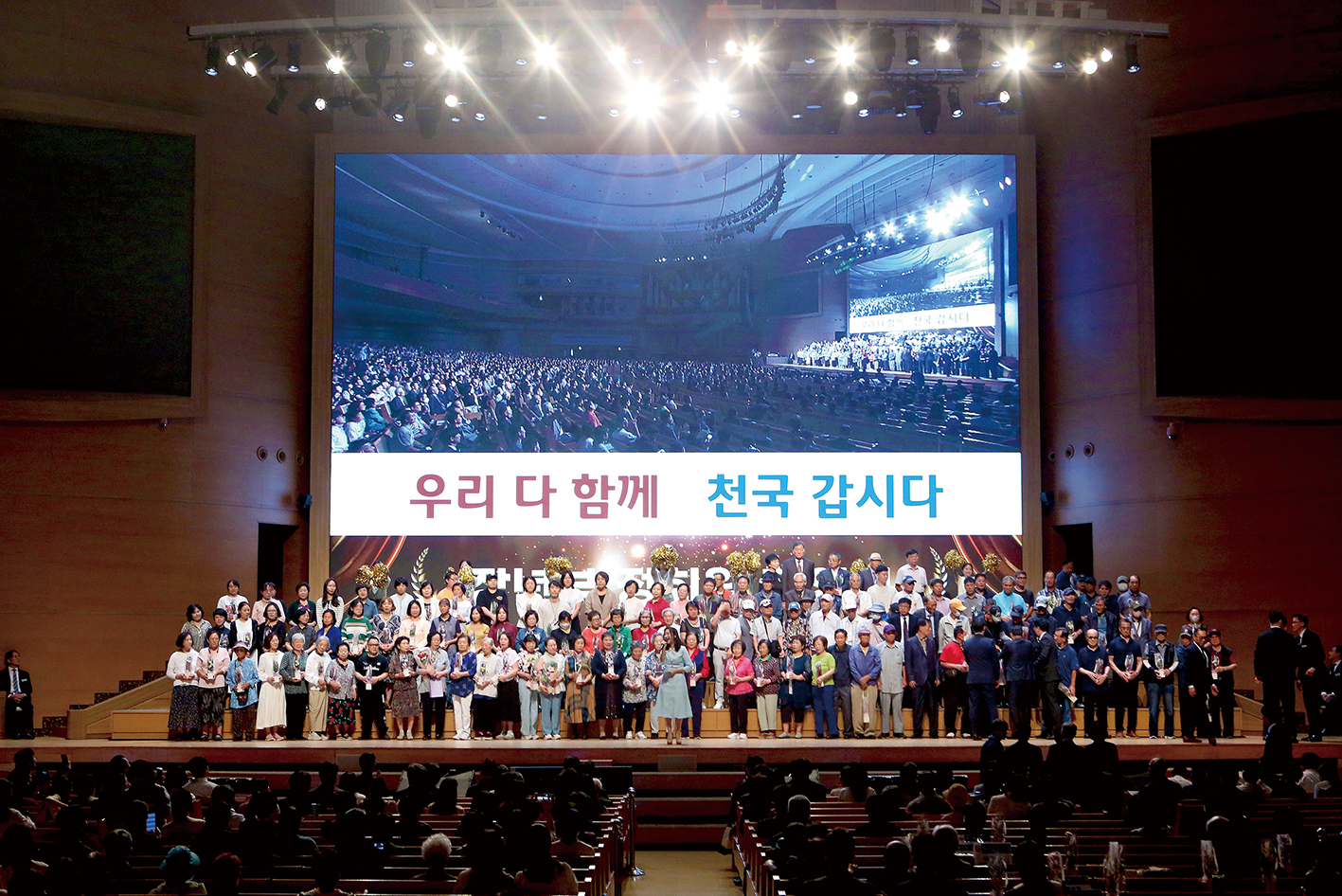 <사진설명>지난 9월 14일(주일) 정회원 환영식 모습. 연세가족들이 정회원이 된 이들을 강단 위로 초청해 “우리 다 함께 천국 갑시다”라며 축복의 메시지를 전하고 있다.