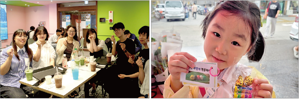 <사진설명> (왼쪽부터)▲청년회는 대학가와 학원가에 전도 거점을 마련해 복음 전하고 있다 ▲교회학교 어린이들도 전도하는 데 열심인 모습.